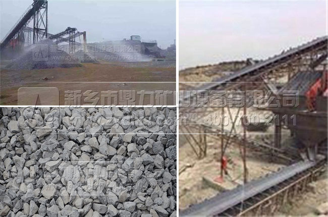 上圖為錘式石料破碎設備生產的質量比較過關的成品料