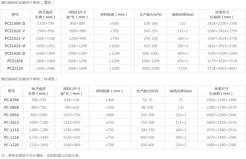 我們從技術(shù)參數(shù)可以看到生產(chǎn)的破碎機(jī)型號(hào)眾多,處理能力不同,時(shí)產(chǎn)50-3000噸的破碎機(jī)都有生產(chǎn)。我們劃分破碎機(jī)大、中、小型型號(hào)是可以根據(jù)處理能力的不同進(jìn)行劃分,譬如:每小時(shí)生產(chǎn)能力在500噸以下的破碎機(jī),我們稱(chēng)為小型破碎機(jī);每小時(shí)生產(chǎn)能力在500噸以上、1000噸以下的破碎機(jī)稱(chēng)為中型破碎機(jī);每小時(shí)生產(chǎn)能力在1000噸以上的破碎機(jī)稱(chēng)為大型破碎機(jī)。