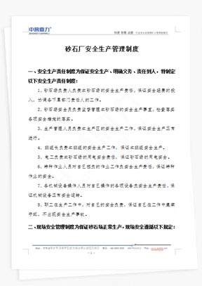提供礦山運(yùn)營(yíng)管理制度、砂石廠生產(chǎn)管理規(guī)章、采石場(chǎng)安全生產(chǎn)標(biāo)準(zhǔn)化文件下載,涵蓋崗位職責(zé)說明書、設(shè)備操作規(guī)范、應(yīng)急預(yù)案模板等全流程文檔,助力企業(yè)合規(guī)高效運(yùn)營(yíng)。