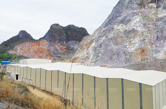 該項目加工碳酸鈣,主要生產1-3、1-2、4-8等多種規格的砂石料,主要碎石加工設備包括重錘破、錘式制砂機及配套設備,生產線整體封閉化設計、成品料采用鋼板儲料罐儲存,共投資1.2億元(包括3800萬環保投資)。