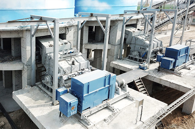如果采用雙線并行的設計方案,主機可以選用兩臺DLPCZ1820重型錘式破碎機,單線每小時產能1500噸,兩條線互不干擾,可單獨生產,靈活度比較高,可以根據淡旺季石料銷售情況,選擇單線生產或同時生產。