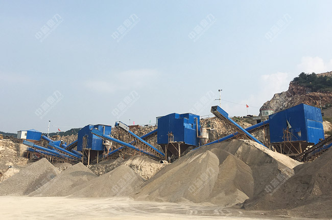 方案三:破碎環(huán)節(jié)選用顎破和圓錐破,可用來破碎高硬度物料,如果原料粒度在40mm以下,可以省去破碎環(huán)節(jié),直接用來制砂