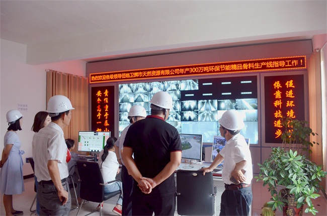 隨后,考察團一行來到中譽鼎力承建的衛輝市資源有限公司時產3000噸砂石骨料生產線,對生產線進料、破碎、出料等各個環節進行實地參觀。河南中譽鼎力智能裝備有限公司技術總工婁彥梅詳細介紹了我公司自主研發的智能礦山管理系統,結合自身生產經驗,引入科技,打造智能礦山管理系統。