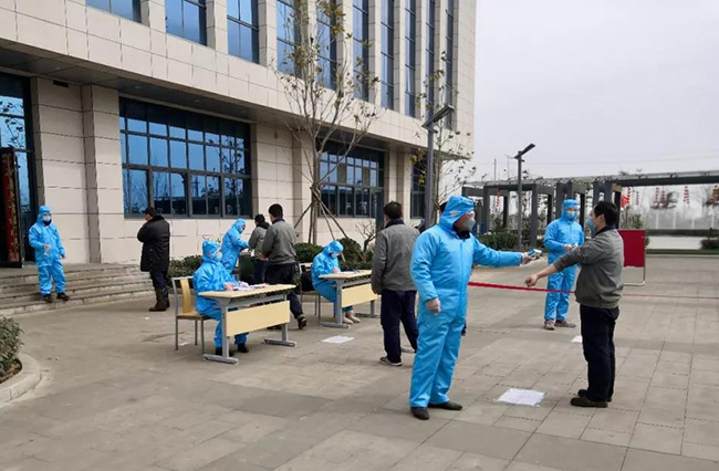 王生群一行來到中譽鼎力廠區內部,詳細了解了公司的值班記錄、體溫測量、人員登記、食堂就餐等情況,認真檢查疫情防控各項措施是否落地、落細、落實。
