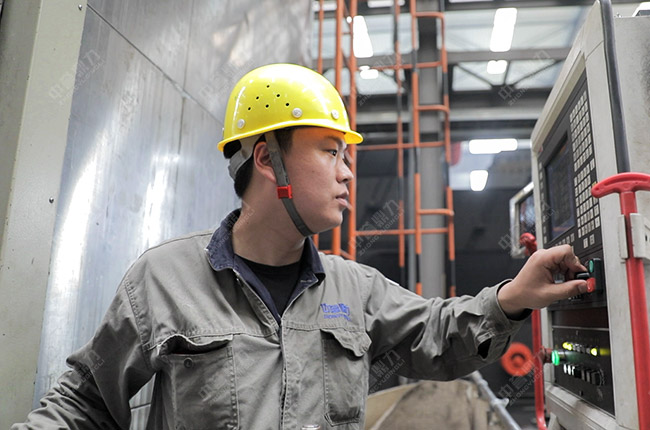 在為期近一個月的培訓時間里,面對師傅從使用說明書的理論知識到機臺面前的實踐操作講解,韓俊勤學、多問、苦練,一心一意強技能,努力不懈求,終于學有所成。回到公司,他便開始全面負責所在班組新設備——數控落地鏜銑床的機加工鏜銑操作。這款機器主要用來加工公司顎式破碎機、臥式旋回破碎機等設備各類機加工件,比如動顎、機殼、機體、軋輥、機架等大型工件。
