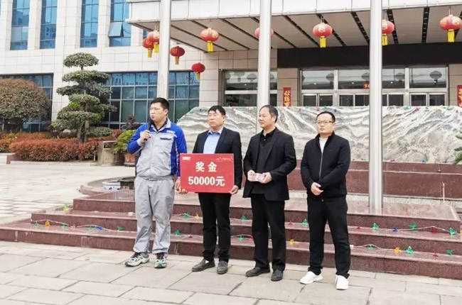 為了進(jìn)一步鼓勵(lì)廣大鼎力員工積創(chuàng)新,推動(dòng)車間生產(chǎn)降本增效,提升礦山設(shè)備成品質(zhì)量,3月20日晨會期間,中譽(yù)鼎力總經(jīng)理?xiàng)钋砉緦Α澳ゴ布几摹表?xiàng)目團(tuán)隊(duì)獎(jiǎng)勵(lì)現(xiàn)金50000元,毛寶華、王衛(wèi)生、桂禮明作為“技改先鋒”代表領(lǐng)獎(jiǎng)。