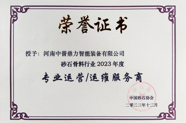 表彰先進,樹立典范,推動砂石行業向更高層次發展,在2023年度砂石及裝備行業表彰會上——河南中譽鼎力智能裝備有限公司喜獲全國砂石骨料行業“專業運營/運維服務商”和“優秀裝備供應商”兩項榮譽表彰;中譽鼎力合作企業甘肅平涼新世紀建材、河南鶴壁淇縣恒源礦業、重慶中材參天建材等相關項目獲評“2020年度綠色砂石基地”!
