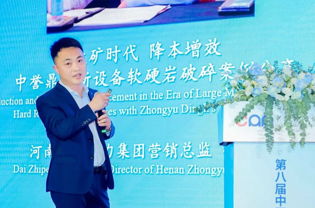 大礦時代來臨,砂石行業高質量發展對裝備產品的要求也越來越高!12月7日上午,在適用技術和裝備論壇,中譽鼎力營銷總監代志鵬以《大礦時代 降本增效 中譽鼎力新設備軟硬巖破碎案例分享》為主題,向與會代表介紹了中譽鼎力近年來結合市場變化與客戶需求,不斷進行設備創新、工藝創新、應用創新,推出了DLHGC 臥式旋回破碎機和DLVSI 立軸沖擊式破碎機等破碎新品,并在市場上得到成功應用,力求在生產效率、節能減排、運營維護等方面,為更多用戶解決難題,創造更大價值。