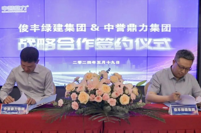 簽約儀式上,荊門俊豐綠建集團(tuán)黨委書記、董事長(zhǎng)胡錕與中譽(yù)鼎力集團(tuán)董事長(zhǎng)張治民代表雙方正式簽訂《戰(zhàn)略合作協(xié)議》。