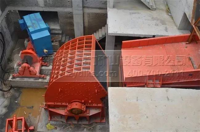 上圖為生產(chǎn)線上配置的頭破設(shè)備,選用的型號(hào)為內(nèi)目前錘式破碎機(jī)單臺(tái)產(chǎn)量的PCZ2125破碎機(jī)設(shè)備,單臺(tái)時(shí)產(chǎn)量可以達(dá)到2500噸以上,是由我們公司自主研發(fā)生產(chǎn)的。