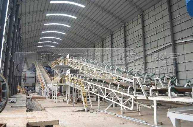 石料破碎后由皮帶輸送機(jī)輸送到封閉生產(chǎn)車(chē)間內(nèi)進(jìn)行二次破碎加工生產(chǎn)。