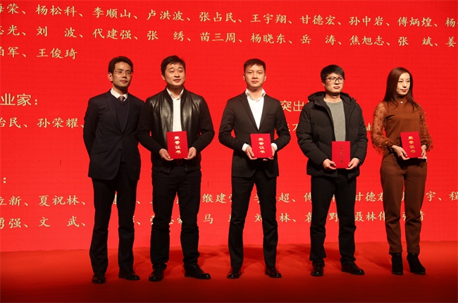 中譽鼎力智能裝備有限公司董事長張治民(中)上臺取“青年企業家”證書