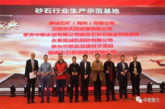 在中砂石骨料網年會評選頒獎環節,中譽鼎力以其在各地建設的多處綠色環保砂石骨料生產基地、環保砂石骨料生產技術及豐富的綠色礦山生產經驗榮獲了四個獎項——中譽鼎力裝備設計公司獲得砂石行業設備供應商”榮譽,公司EPC項目部總經理張永臣榮獲“砂石行業工藝設備”稱號,公司承建的衛輝市資源有限公司時產3000噸砂石骨料生產線、河北白沙時產2500噸砂石骨料生產線榮獲“砂石行業生產基地”榮譽。