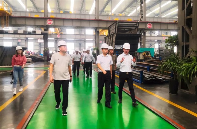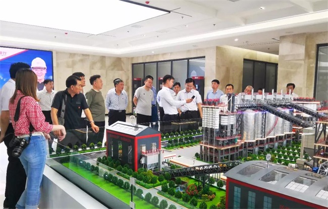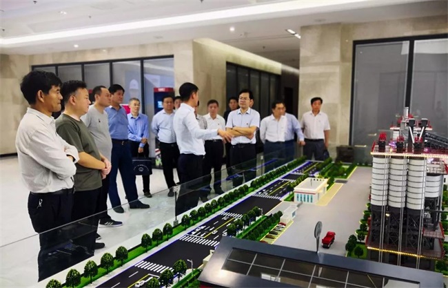 在參觀完中譽鼎力智能裝備公司并且聽取了張治民董事長對企業的詳細介紹后,考察團導表示中譽鼎力給他們留下了深刻印象:中譽鼎力環保化、智能化的設備生產基地,對推動建材產業轉型發展和綠色發展有很好的作用,對此贊賞。