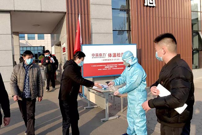 2月19日下午,新鄉市疾控導葉明等人在衛輝副市長董岐山的陪同下來到中譽鼎力,對我公司復工過程中的疫情防控工作進行檢查、指導。河南中譽鼎力智能裝備有限公司副總經理崔玉清、總經辦主任吳澤朋陪同接待,并匯報公司疫情防控工作的各項具體情況。