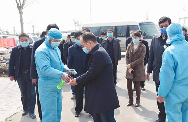 衛(wèi)輝市市長范士富、衛(wèi)輝市常務(wù)副市長李志勇、副市長董岐山等導(dǎo)程陪同指導(dǎo)調(diào)研。中譽(yù)鼎力董事長張治民詳細(xì)匯報(bào)了中譽(yù)鼎力的疫情防控工作和復(fù)工復(fù)產(chǎn)情況。