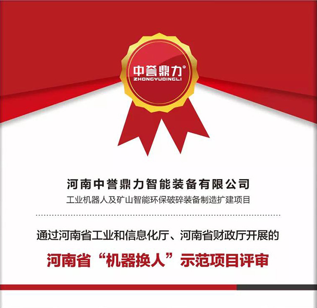 其中,河南中譽鼎力智能裝備有限公司工業機器人及礦山智能環保破碎裝備制造擴建項目成功通過評審。