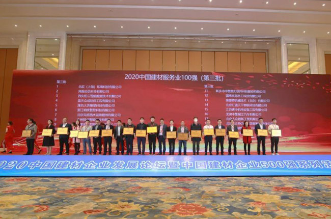 11月5日-6日,由中建筑材料企業管理協會舉辦的“2020年中建材企業發展論壇暨2020中建材企業500強系列活動發布會”在安徽合肥隆重舉行。會上,中譽鼎力軟件科技股份有限公司榮獲“2020中建材服務業100強”稱號。