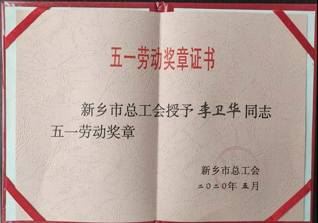 5月,生產(chǎn)車間主任李衛(wèi)華被授予“新鄉(xiāng)市五一勞動(dòng)獎(jiǎng)?wù)?rdquo;
