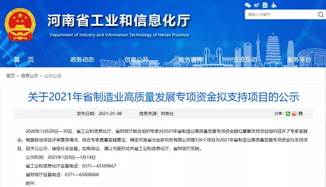 2020年12月28日—30日,河南省工業(yè)和信息化廳、省財政廳聯(lián)合組織對2021年省制造業(yè)高質(zhì)量發(fā)展專項資金疑似重復(fù)支持項目組織召開了答疑會,536個項目為2021年省制造業(yè)高質(zhì)量發(fā)展專項資金擬支持項目。