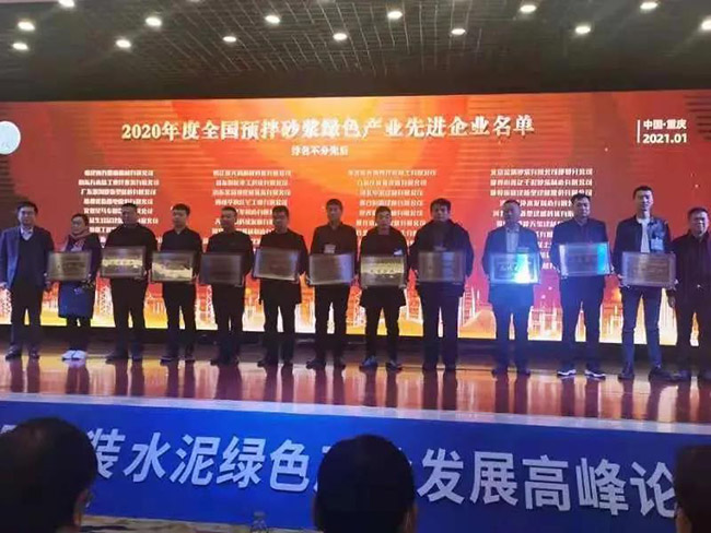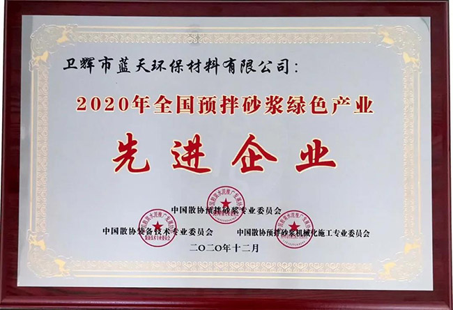 年度表彰環節,衛輝市藍天環保材料有限公司作為新鄉市5家成功入選企業之一,喜獲“2020年預拌砂漿綠色產業企業”榮譽表彰!