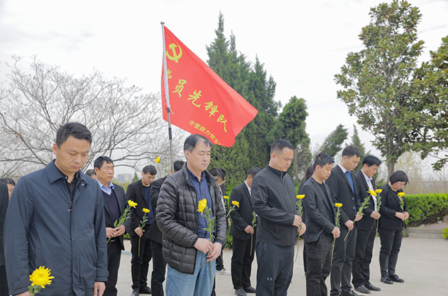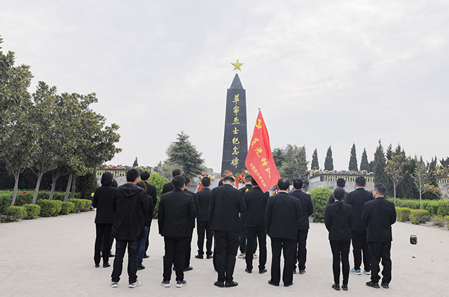 銘記百年黨史,緬懷革命先烈。為弘揚愛主義精,深切緬懷革命先烈的光輝事跡,4月5日上午,中譽鼎力智能裝備有限公司常務副總經理張志宇、中譽鼎力黨建指導員王士存、中譽鼎力智能裝備有限公司行政副總經理崔玉清、營銷副總經理王春燕、生產副總經理李及公司各職能部門負責人共計20余人來到衛輝市烈士陵園,開展“清明祭英烈”主題活動。