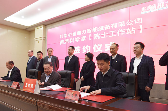 會上,張治民董事長代表中譽鼎力聘請中工程院院士、中礦業大學教授張鐵崗成為河南中譽鼎力智能裝備有限公司席科學家,后期將合作建設院士工作站。張鐵崗院士、張治民董事長和路先鋒總經理就此進行正式簽約。新鄉市、衛輝市相關導及與會人員在現場共同見證這一隆重時刻。