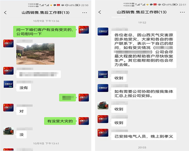 一方有難、八方支援,心系山西、共克時艱。剛剛經(jīng)歷過7月份衛(wèi)輝特大暴雨和洪澇的河南中譽鼎力智能裝備有限公司感同身受。山西特大暴雨剛發(fā)生,公司山西服務(wù)人員便迅速行動,時間電話詢問合作客戶生產(chǎn)線的受災(zāi)情況,在對客戶表示關(guān)心慰問的同時,深入細致地了解客戶生產(chǎn)線的各種問題和具體需求,及時提供幫助。
