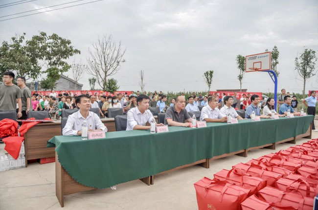 8月26日下午,衛(wèi)輝市委常委、辦公室主任、太公鎮(zhèn)黨委書記胡良,衛(wèi)輝市副市長孫建明,衛(wèi)輝市政協(xié)副主席崔福明,共青團(tuán)衛(wèi)輝市委書記鄭鑫,衛(wèi)輝市教育局局長孫西,衛(wèi)輝市教育局副局長焦元玉,衛(wèi)輝市太公鎮(zhèn)黨委副書記、鎮(zhèn)長劉營斌,周邊32個(gè)村支部書記、受資助學(xué)生及家長、村民代表共計(jì)200余人參加捐贈(zèng)儀式。