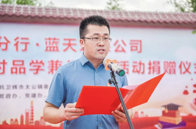張治民董事長代表藍(lán)天環(huán)保材料公司,現(xiàn)場為古子澗村大學(xué)生和被衛(wèi)輝一中錄取學(xué)生發(fā)放數(shù)萬元愛心物資,包括每名學(xué)生1000元現(xiàn)金,行李箱、太空被等學(xué)習(xí)生活用品。他對(duì)考入理想學(xué)府的學(xué)子們表示祝賀并予以激勵(lì),希望同學(xué)們無畏困難,磨煉意志,自信自立,不斷充實(shí)和提高自己,為社會(huì)、為家鄉(xiāng)貢獻(xiàn)自己的力量!