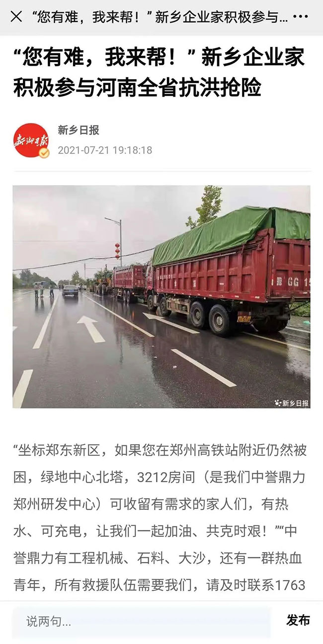 中譽(yù)鼎力從上到下踴躍參與防汛救災(zāi)工作,被新鄉(xiāng)日?qǐng)?bào)等媒體報(bào)道。