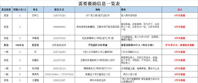 自7月23日早上起,在中譽鼎力董事長張治民、總經(jīng)理楊乾,藍天環(huán)保副董事長趙銳、總經(jīng)理耿強、銷售總監(jiān)朱濤等導(dǎo)的指揮下,公司行政部門開始統(tǒng)計大家在社交平臺上收集的受災(zāi)群眾信息。
