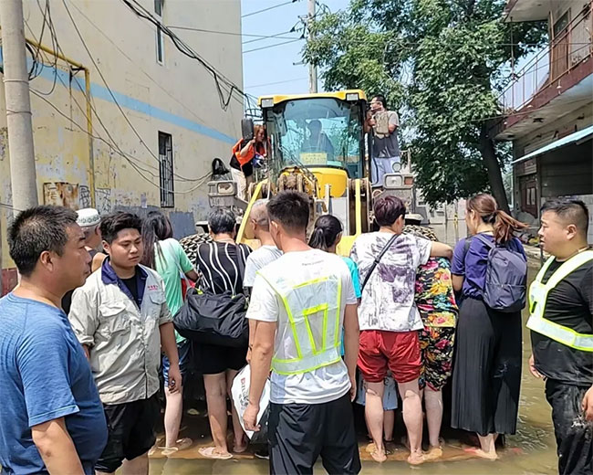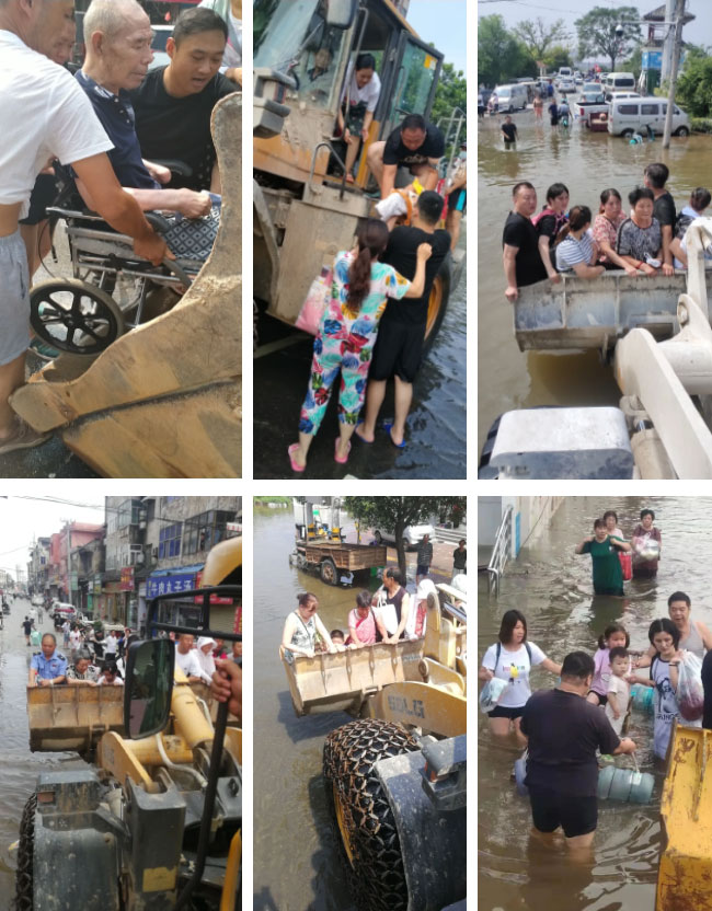 企管部長吳澤朋組織中譽鼎力抗洪救援隊迅速集合出發(fā),駕駛機械車輛、救援鏟車,攜帶皮劃艇、防汛砂等救援器材和方便面、飲用水等救災(zāi)物資,趕赴受災(zāi)群眾家中,與救援團隊一起并肩作戰(zhàn),進行緊急救援。