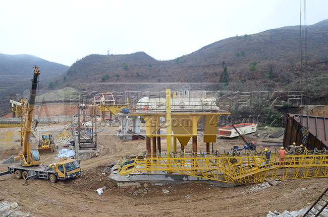 在正在投建的砂石骨料生產線現場,我們可以看到現場施工熱火朝天,各項安裝工作正在有序進行當中,據凱仕順和的李總介紹,此條生產線上使用的部設備都是來自新鄉鼎力生產的,使用上8臺重型3070重型振動篩、1臺上振篩、2臺PCZ1615破碎機、1臺雙轉子整形制砂機,生產線于2015年8月正式啟動建設,預計將于2016年3月正式投入生產,并且在生產線設計中有加裝環保除塵設備,可以大大減少生產中出現的粉塵,設計的生產時產量為1000噸,依據以往的生產經驗來看,可以在生產中達到1200噸。