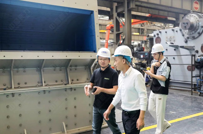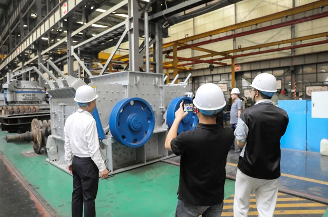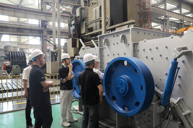 在觀摩過程中,參觀團(tuán)查看了中譽(yù)鼎力破碎機(jī)、制砂機(jī)產(chǎn)品,并了解了產(chǎn)品的特點(diǎn)、原理和性能優(yōu)勢。