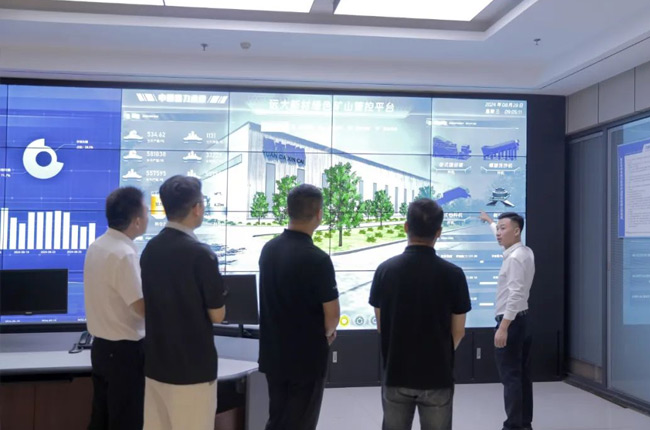 在中譽(yù)鼎力綠色建材大數(shù)據(jù)中心和智能化大廳,王順凡、杜凡新先介紹了中譽(yù)鼎力的企業(yè)情況、產(chǎn)品研發(fā)、智能礦山、建材業(yè)務(wù)等內(nèi)容。參觀團(tuán)先后了解了中譽(yù)鼎力在智能礦山管理、建材線上交易、綠色建材產(chǎn)業(yè)園等方面的成果和應(yīng)用。