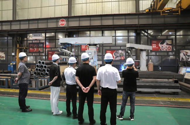在中譽(yù)鼎力大型一體化智能車間,王順凡、杜凡新圍繞著公司的產(chǎn)品制造工藝流程、生產(chǎn)、加工細(xì)節(jié)等情況進(jìn)行了介紹。