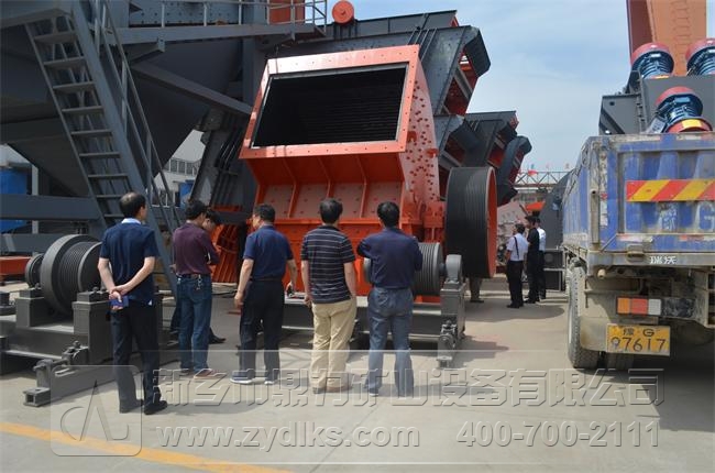 圖為天瑞水泥集團相關人員在PCZ2125破碎機設備前駐足觀看