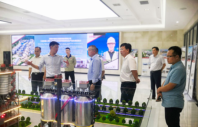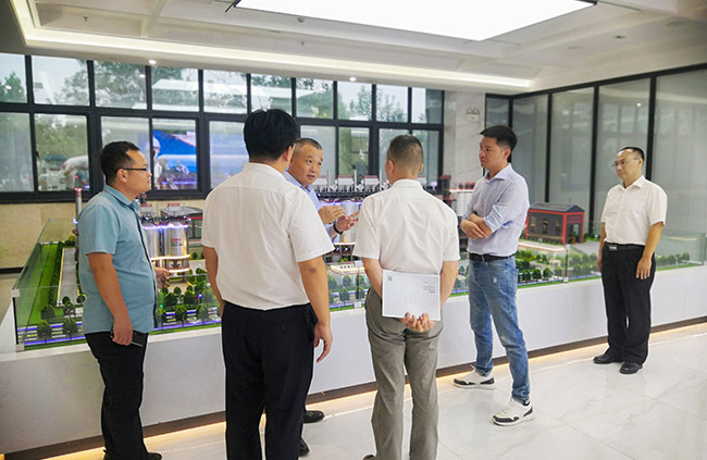 隨后,考察團來到中譽鼎力智能化展示,實地參觀了中譽鼎力多位一體循環建材產業園項目沙盤,并觀看了公司相關介紹。
