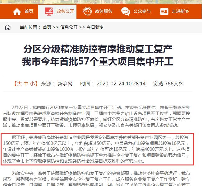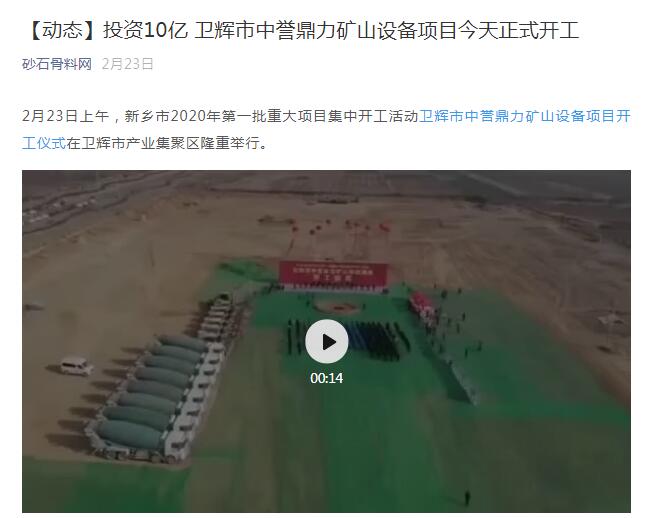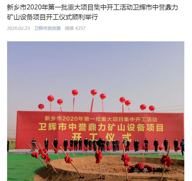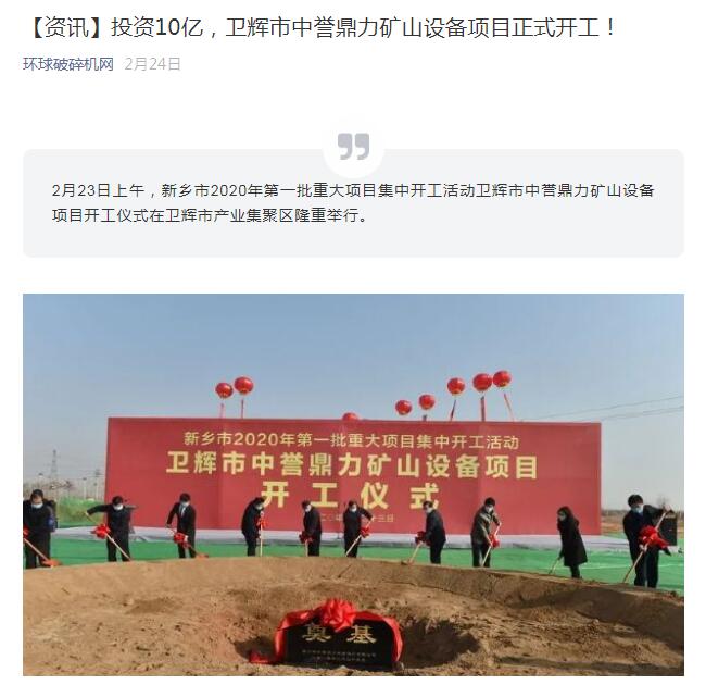 報道鏈接:【資訊】投資10億,衛(wèi)輝市中譽鼎力礦山設備項目正式開工!