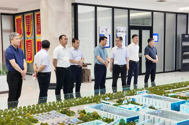 在參觀中譽鼎力綠色建材大數據以及建材產業園沙盤的過程中,調研組一行深入了解了中譽鼎力的生產經營、產業規劃、產品市場、上市籌備等,交流企業在發展中遇到的難題與需求,并現場要求相關部門積對接企業需求,為企業上市和高質量發展做好保障。