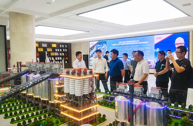 隨后,考察團(tuán)一行來到河南中譽(yù)鼎力智能裝備有限公司,實(shí)地參觀了中譽(yù)鼎力礦山管理云數(shù)據(jù)和多位一體循環(huán)建材產(chǎn)業(yè)園項(xiàng)目沙盤,并進(jìn)行座談。