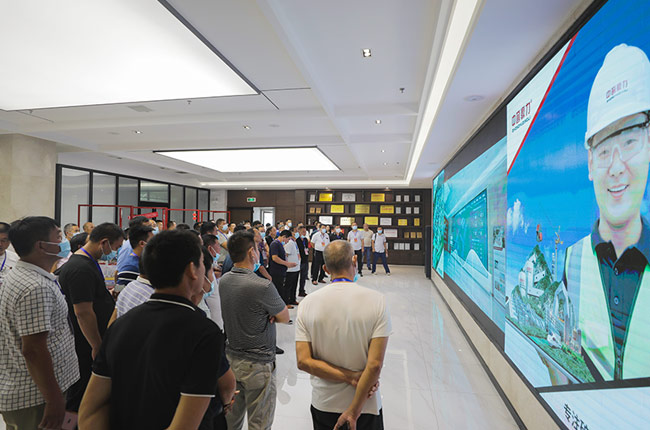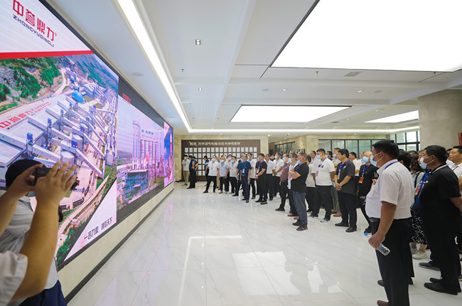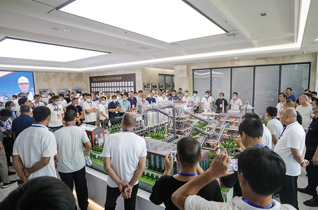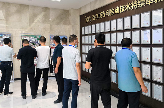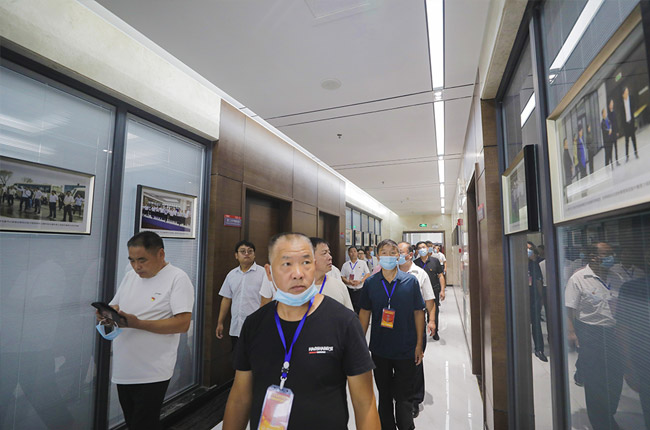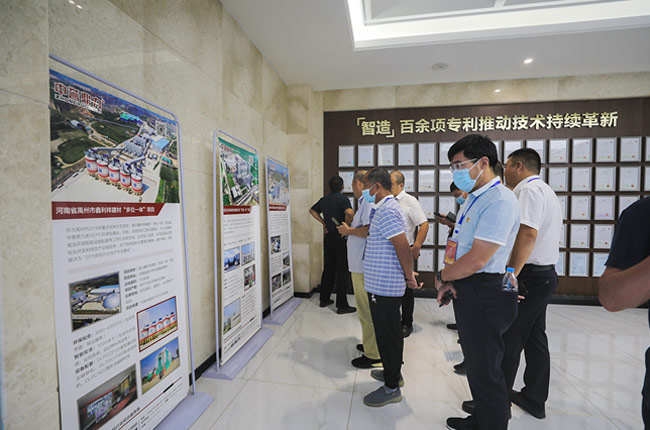 在智能裝備公司綜合辦公樓,考察團先后參觀了中譽鼎力企業文化墻和多位一體循環建材產業園項目沙盤,并觀看了公司相關宣傳片,對中譽鼎力主營業務及近年來發展情況有了進一步了解。
