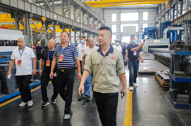 當天上午,考察團一行蒞臨中譽鼎力參觀調研。河南中譽鼎力智能裝備有限公司行政副總經理崔玉清、企管部長吳澤朋程陪同,并介紹公司各項情況。