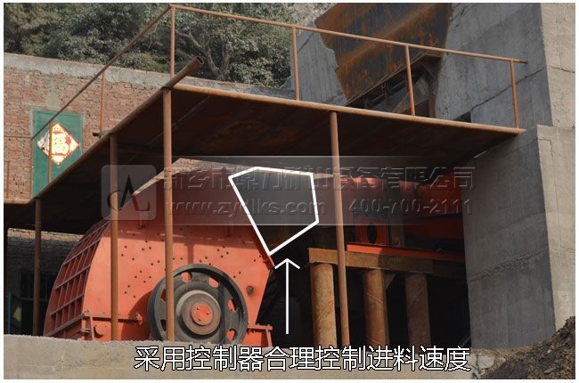 針對大石頭破石機堵料的問題,可以采用控制器控制破碎機進料速度,按照合理的進料速度進料,不能過破石機的承載負荷,可以避免物料在一瞬間部擁堵在進料口那里,影響物料正常進入排出。