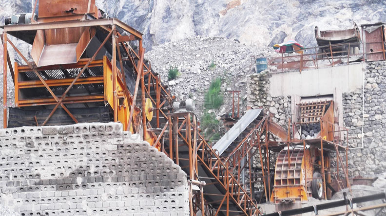 在時產800噸石料生產線現場我們看到,這是一條自動化程度比較高的生產線,幾乎上不需要耗費過多的人力,排料粒度大小也是可以調節的,破碎效率也是比較高的,經過破碎的產品粒度是均勻的,針片狀的含量是比較低的,適合公路、橋梁等大中型建設項目。