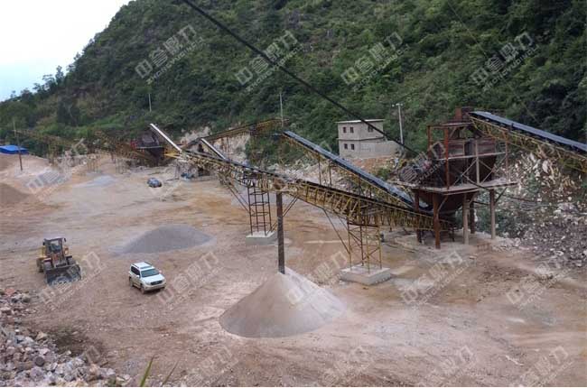 • 設備配置:ZGC1538振動給料機+PCZ1615大護邊重型錘式破碎機+4臺YKZ2460輕型振動篩+ZSJ1218雙轉子制砂機