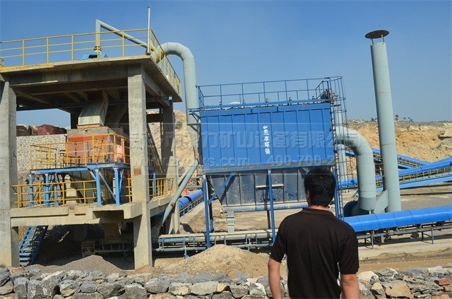 時產300噸環保石料生產線基本配置:ZG1238振動給料機、PCZ1512重型錘式破碎機、2YK2060振動篩*2、DMCA脈沖除塵器*5臺等。在這條石料生產線中,物料先經由重型錘式破碎機進行破碎,被破碎后的物料經振動篩篩分分級,符合客戶粒度需求的成品物料被傳送至成品料堆,不符合的物料被重新送至破碎機機腔內進行再次破碎。在每一個環節都配置有相應的除塵設備。這是一條封閉型的環保石料生產線。也是我們家砂石生產行業要發展的方向。