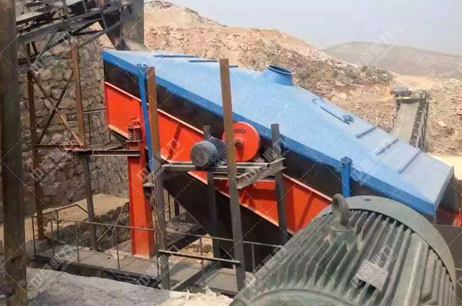 在時產600噸石子生產線生產現場,我們可以看到錘式破碎機承擔了頭破的作用,將大塊的石灰石進行破碎,成品經振動篩篩分后用于磨粉段。生產線建設依托的地勢,輸送過程方便快捷,無需使用過長的輸送帶。