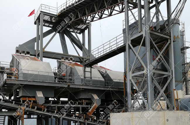 • 設備配置:振動給料機ZGC1550、重型錘式破碎機PCZ1615、整形機XPC1216、振動篩3YKZ3070*2臺、2YKZ3070*2臺
